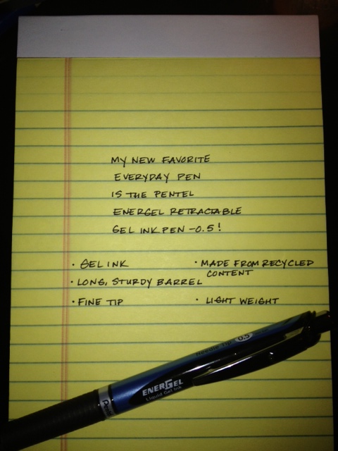 The Pentel EnerGel has quickly become my favorite every day pen, hands-down. I’d initially tried the EnerGel in the 0.7 tip (and I even have a few EnerGize pencils). And while I liked the 0.7 model OK, I recently purchased the 0.5 needle tip, and what a difference!