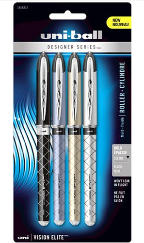 It’s been many months since I originally saw the Vision Elite Design Series pubbed on Uniball’s Facebook page. After seeing it I immediately went out that day to see if I could find them at my local office supply stores and retailers, and sadly to say, none of them had it. After a few more weeks of looking on various trips, I gave up hope finding them offline. But on a recent trip to Walmart, lo and behold! There they were in all of their glory, staring right back at me. I quickly snatched up a pack and headed home feeling victorious and lucky.